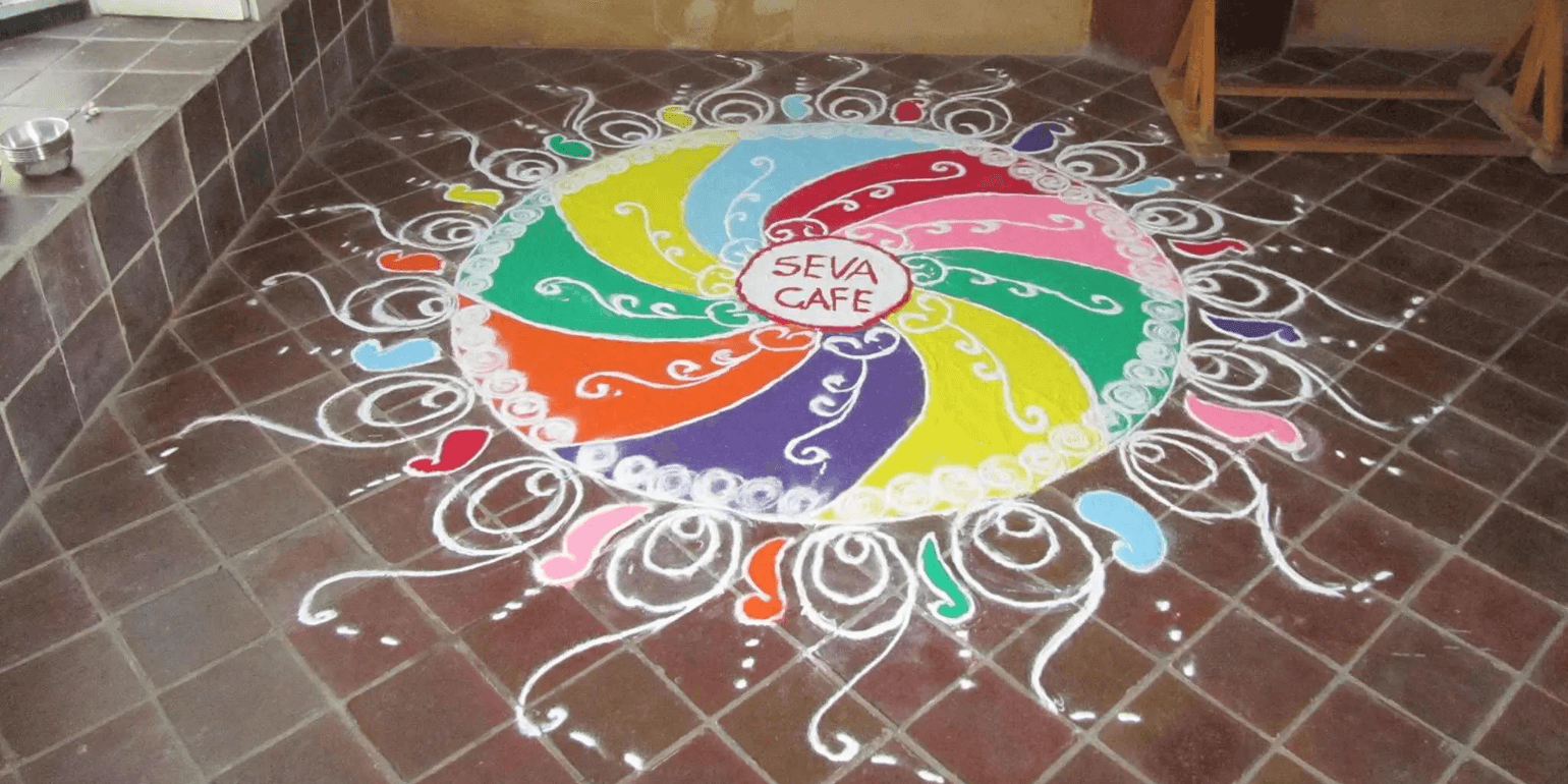 On Saturday, 30th March the enthusiastic dots involved themselves to work prominently with members at Seva café while playing activities and also some cleaning work. Joining hands for good cause has always been in culture of Mutlidots team. Playing with colors comes from the list of most preferred and enjoyable tasks, so dots together had fun creating artistic shaped Rangolis at Seva Café entrance. All the dots mingled with Seva Café members and volunteers and filled the evening with fun and wonderful colors!